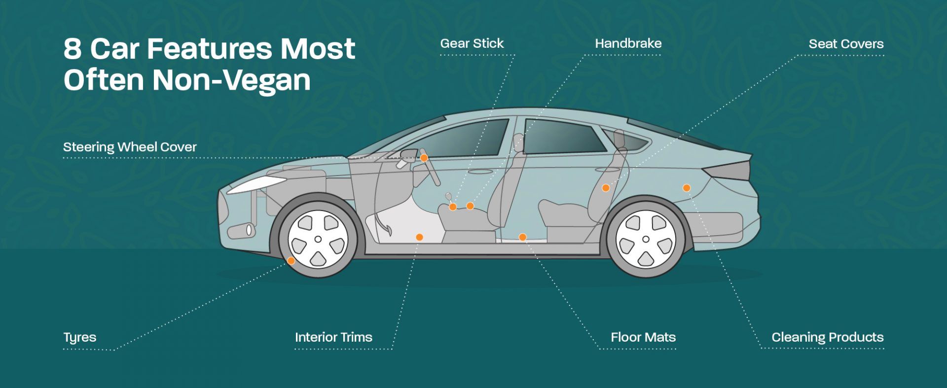 Research from Peter Vardy1Peter Vardy. 2021. Vegan Friendly Cars. Available: https://www.petervardy.com/news/vegan-friendly-cars [Accessed 11 June 2021]. highlights the eight car features which are most commonly non vegan: