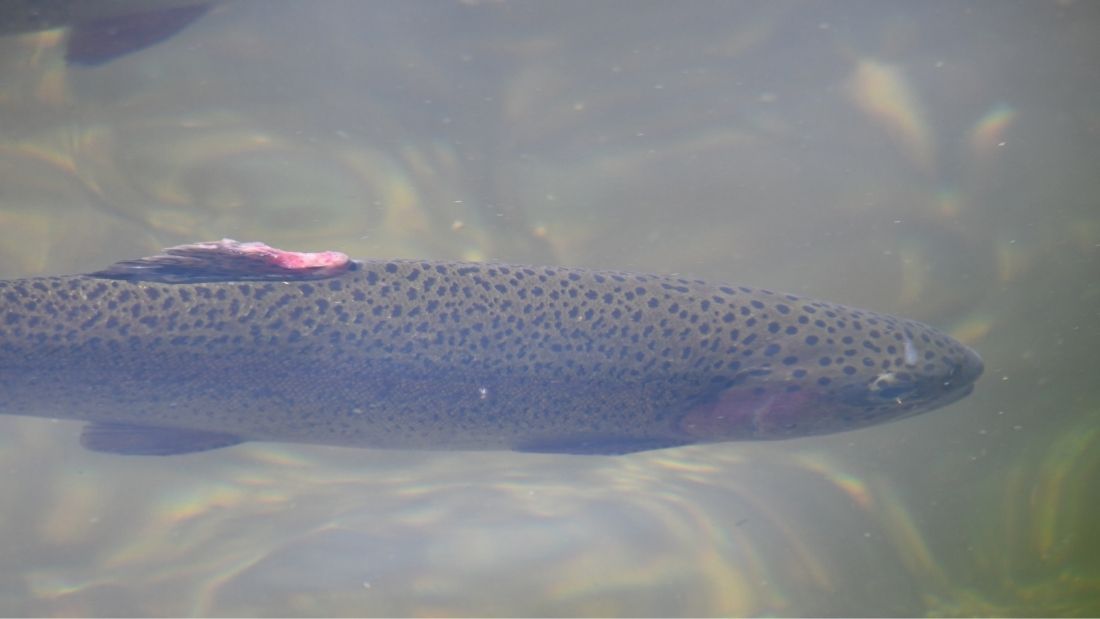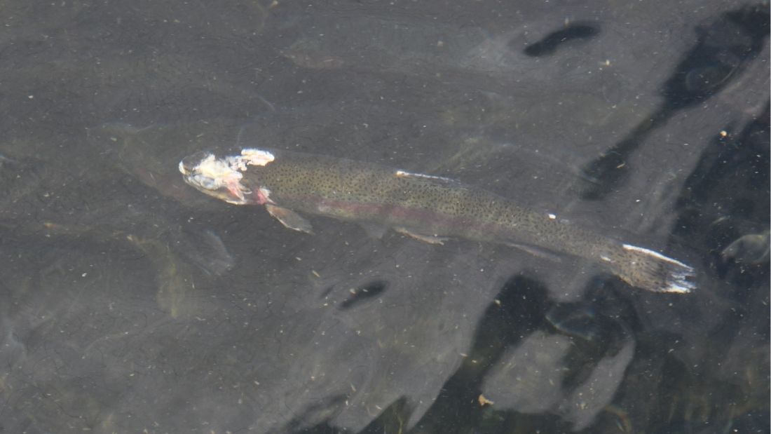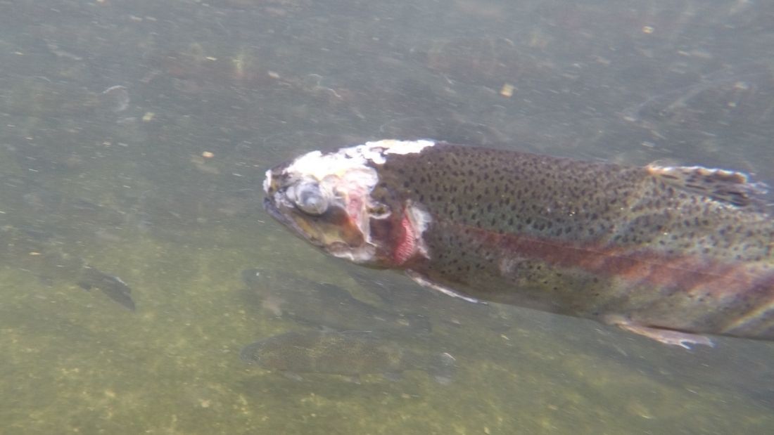 Injured rainbow troutDead trout caught in nettingEngland's largest trout farm