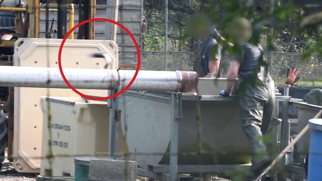 At Test Valley Trout’s Island farm in Romsey, contracted by ChalkStream Foods, workers were documented removing fish from the water for an extraordinarily long period of time to weigh them in a dry bucket – exceeding RSPCA ‘out of water times’ by more than double. This practice limits the fishes’ oxygen supply and causes suffocation. The workers’ actions will have inflicted tremendous stress and anxiety in these cases.